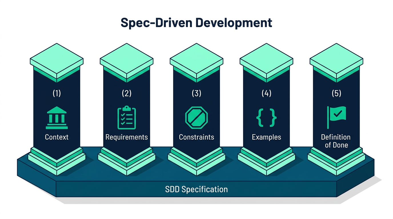 Spec-Driven Development (SDD) har ennå ikke én universelt akseptert definisjon, men det handler om å skrive en strukturert spesifikasjon før du ber agenten skrive kode. Specen blir kontrakten mellom deg og AI-agenten.