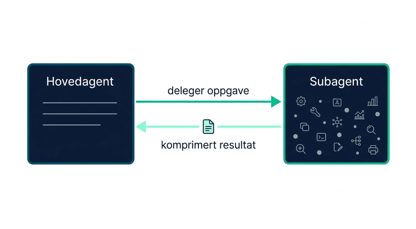 Subagenten utfører kanskje ti websøk, men hovedagenten mottar kun én oppsummering. Konteksten forblir ren.